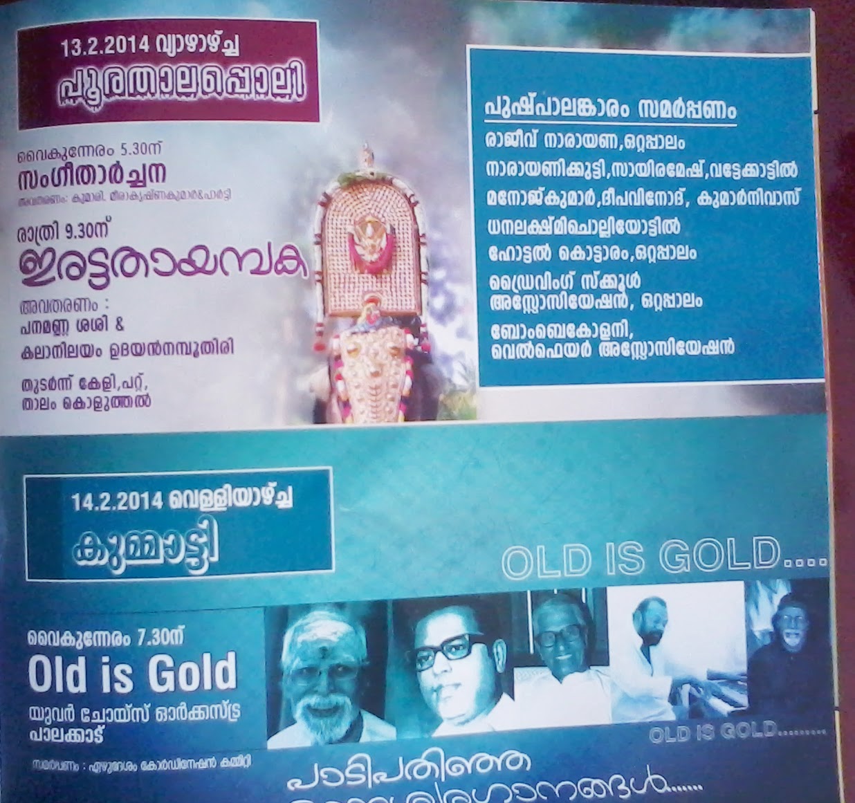 Chinakkathoor pooram 9, 10 feb 2014 programes